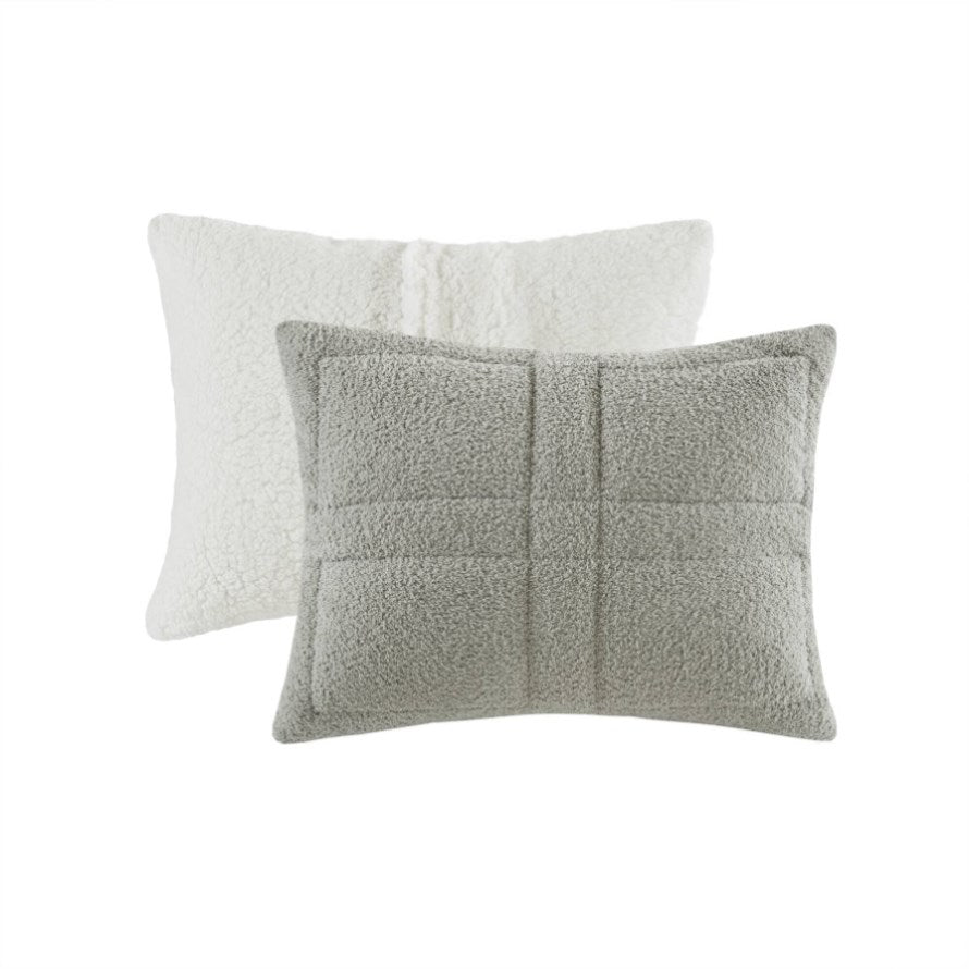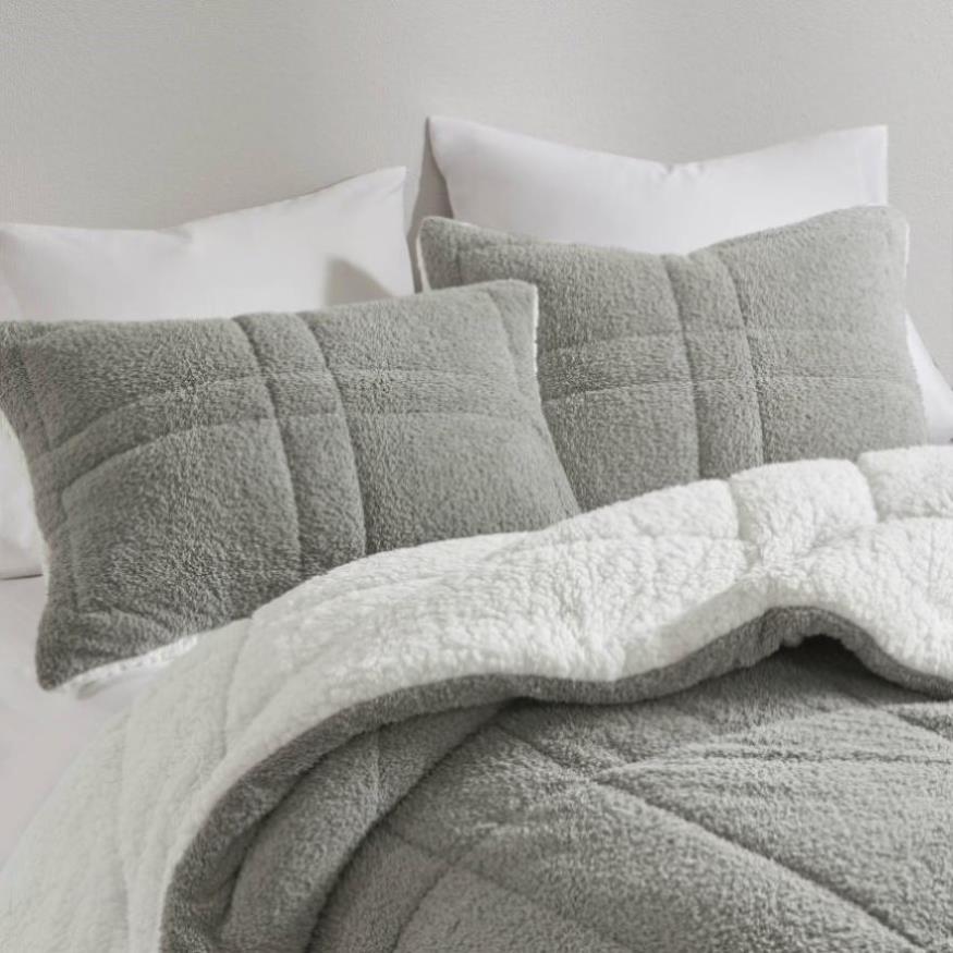 Comforter/Sham: 100% polyester faux feathersoft, ivory sherpa reverse