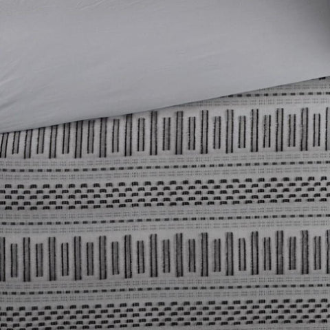 Give your bedroom a comfortable farmhouse look with INK+IVY’s Rhea Cotton Jacquard Comforter Mini Set. The grey cotton comforter features horizontal stripes, in black hues, with eyelash-looking woven details that add a charming accent to the top of the bed. Hidden bartacks create a clean, duvet-like finish on the comforter, while matching shams mimic the design seen on top of the bed completing the cotton jacquard bedding set. Made from 100% cotton, this jacquard comforter set is machine washable for easy care and provides a causal allure for your bedroom decor. This bedding set is also OEKO-TEX certified, meaning it does not contain any harmful substances or chemicals, ensuring quality comfort and wellness. Items in the set may come in a rolled or compressed packaging, which will need to be fluffed up or steam ironed before use to remove wrinkles.