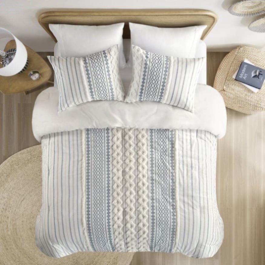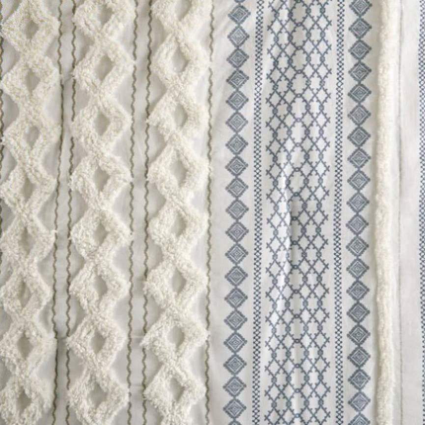 Bring a soft, mid-century look to your bedroom with the INK+IVY Imani Cotton Comforter Mini Set. The cotton comforter features geometric prints with tufted chenille that adds dimension and charm to the bedding set. Visible bartacks give the comforter a duvet-like finish, while the solid reverse complements the eye-catching patterns seen on top of the bed. Two cotton shams reiterate the designs of the comforter, creating a stunning coordinated look. Made from 100% cotton, this comforter mini set is machine washable and offers a refreshingly soft update to your bedroom decor. This bedding set is also OEKO-TEX certified, meaning it does not contain any harmful substances or chemicals, ensuring quality comfort and wellness.