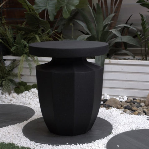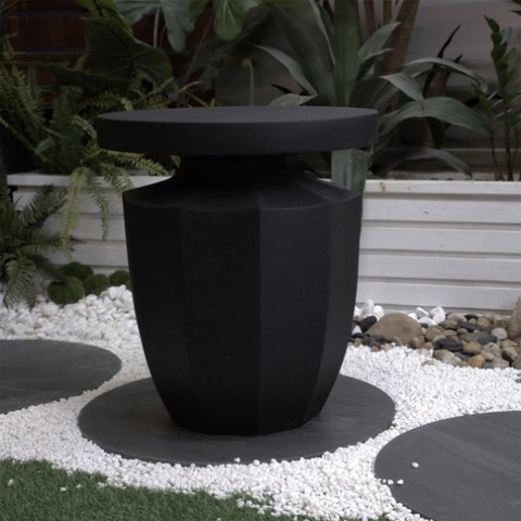 Sturdy & DurableThe modern garden side table/outdoor stool is Crafted from high quality MGO and fiberglass blend that is sturdy and durable. Durable and weatherproof for long-time use. Size: 15.75"L x 15.75"W x 17.75"H( 19.8lbs ). Weight capacity: 220 lbs(a 0.24 inch ventilation hole in the bottom).