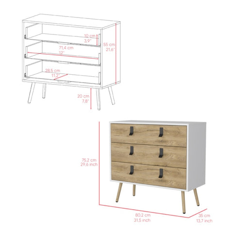 Three drawers (12"W X 3,9"H X 11,2"D) with metal handles