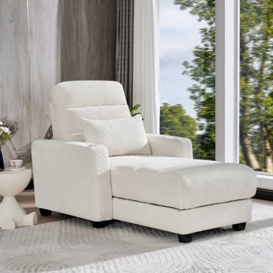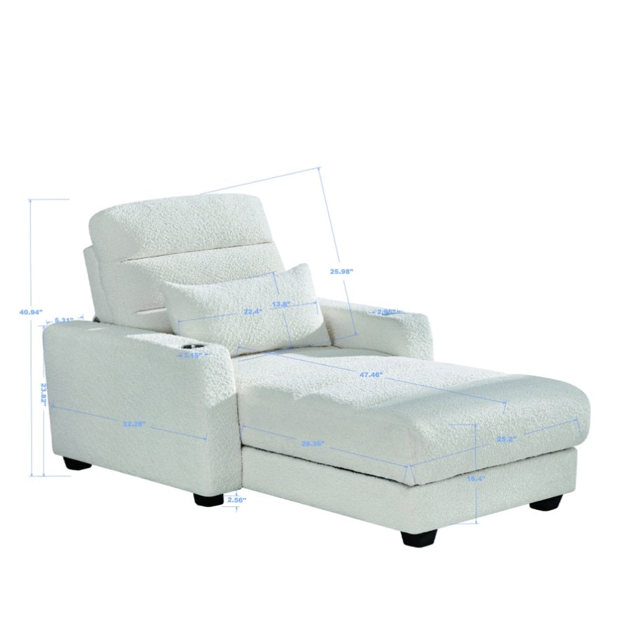 Electric Lounge Chair with Adjustable Backrest, Lumbar Pillow, Wireless Charging and Cup Holder, W2817P255562