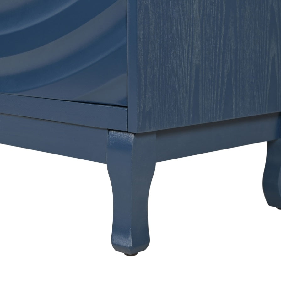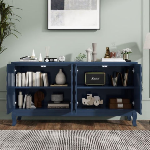 [Sophisticated Wavy Pattern Doors]:The four doors of this sideboard feature a beautifully crafted wavy design that adds movement and texture to the piece. The flowing wavy lines bring a sense of elegance, making it a striking focal point in any room.