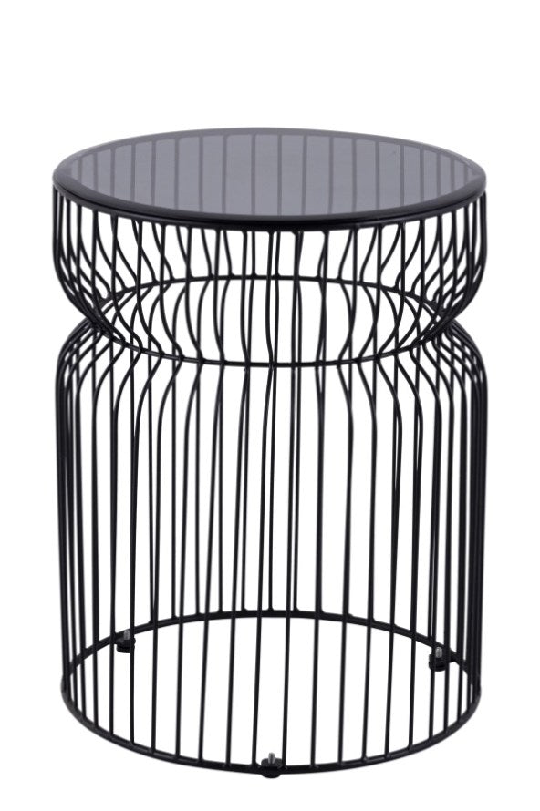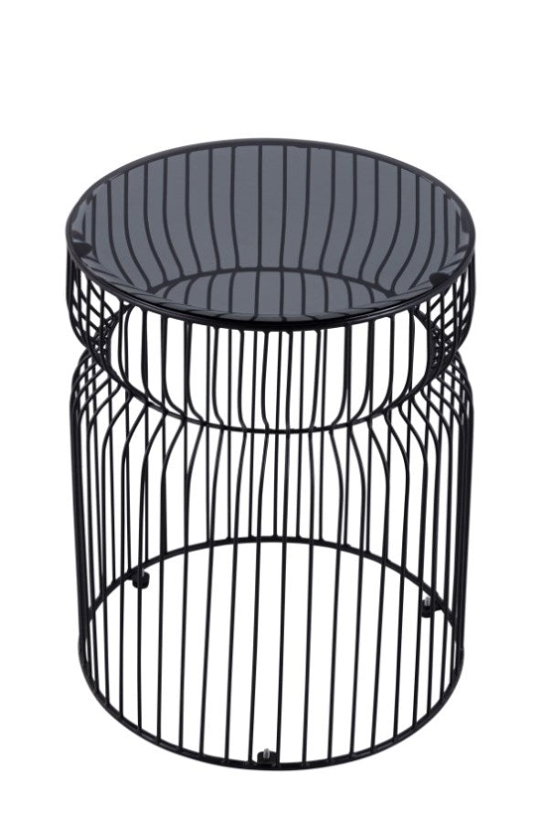This contemporary end table brings sophistication and functionality to any room with its unique metal frame and tinted tempered glass top. Available in three versatile finishes—gold, chrome, or black—this table effortlessly complements various decor styles. The airy, open-frame design gives it a modern aesthetic while offering a sturdy surface for essentials or decor.