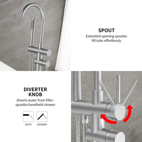 ✔Functions: 360 Degree Swivel Spout, Handheld Shower will help to rinse down the tub or rinse off after a bath, very convenient to clean. Come with a diverter knob, switch between tub spout and hand shower