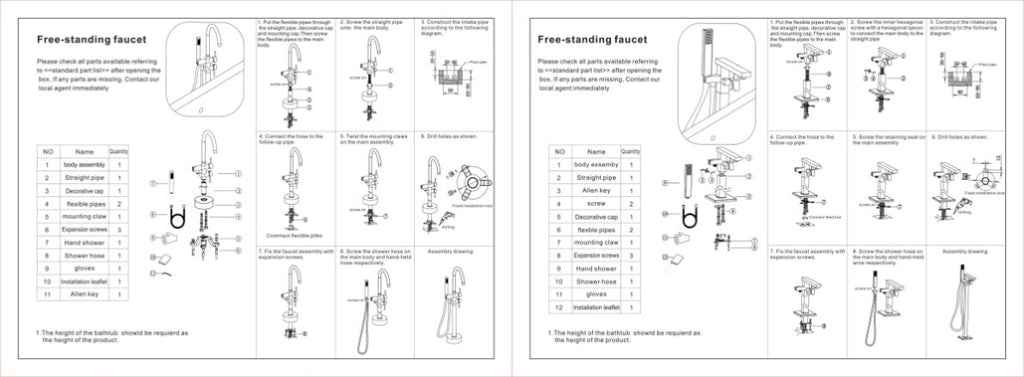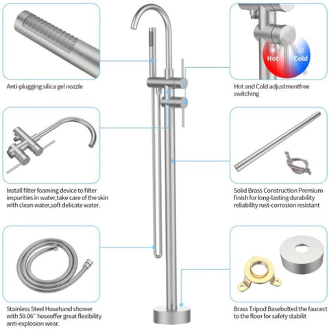 ✔Set Include: bathtub faucet body, brass faucet tube, handheld shower, cold and hot hose, base cover, mounting hardware and installation instruction.