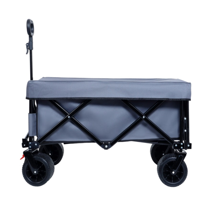 Versatility and Use CasesThe foldable handcart is perfect for a variety of outdoor activities. Whether you're heading to the beach, fishing, carrying large sand toys for children, gardening tools, or picnic supplies, this trolley is designed to meet your needs. It can also be used as a dog stroller or a shopping trolley. The outer metal eyelets or lashing eyes allow you to secure the load with straps (not included), adding an extra layer of safety during transport.