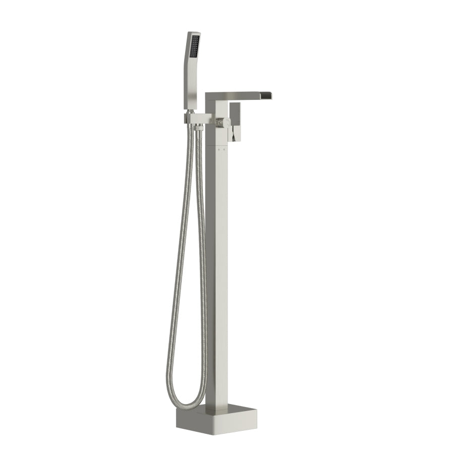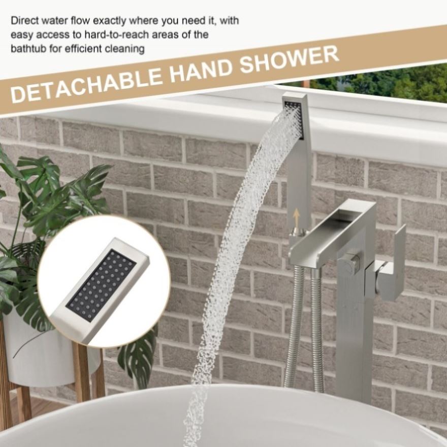 Freestanding Bathtub Faucet Waterfall Tub Filler Brushed Nickel Floor Mount Brass Bathroom Faucets W1243P316370