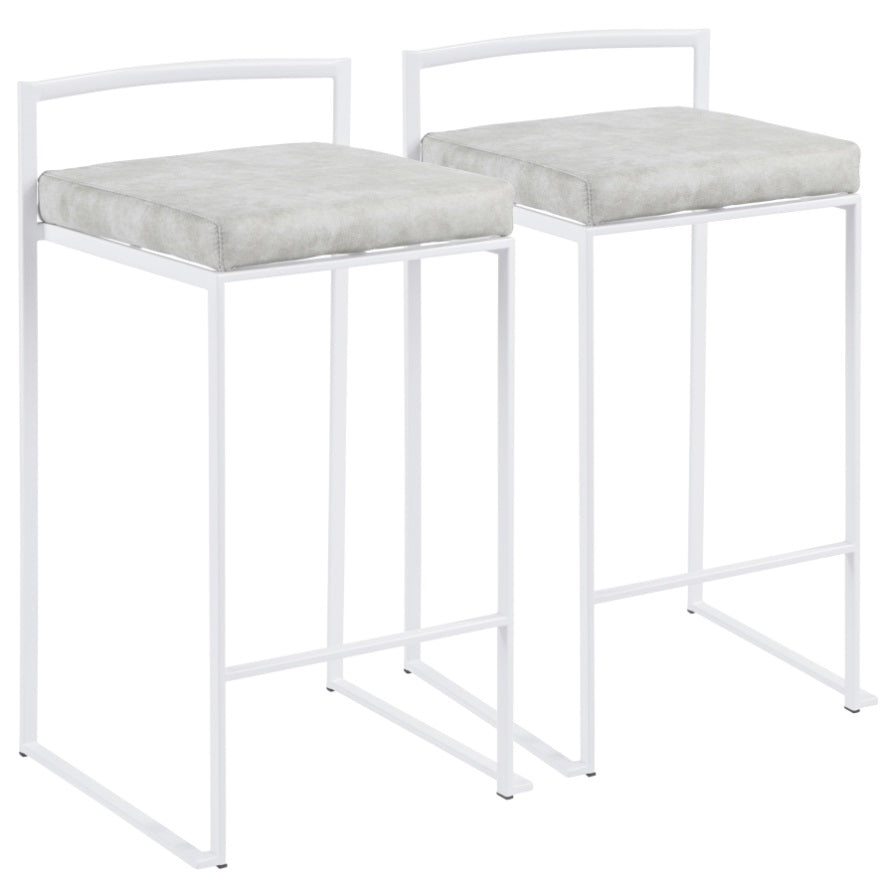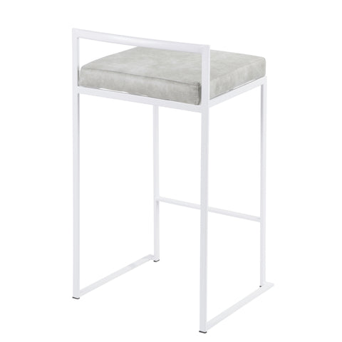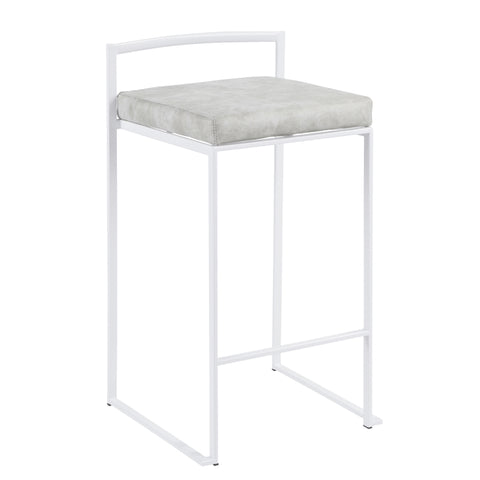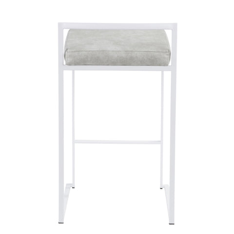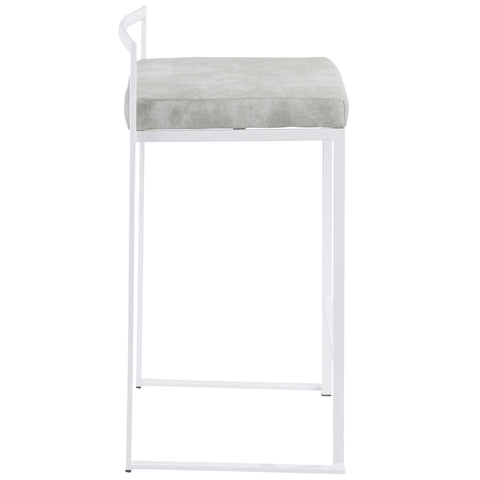 Fuji Contemporary Stackable Counter Stool in White with Light Grey Cowboy Fabric Cushion by B202P222384