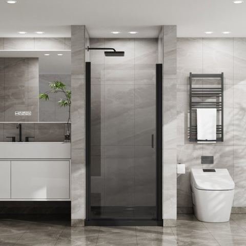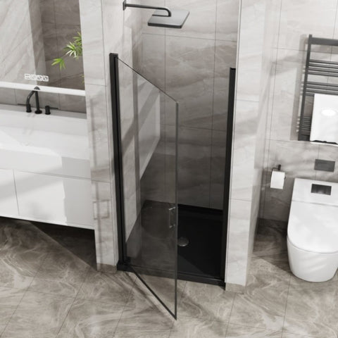 Goodyo 34"x72" Pivot Shower Door, 1/4 inch Thick Tempered Glass Swing Shower Door in Black Finish, D163102093