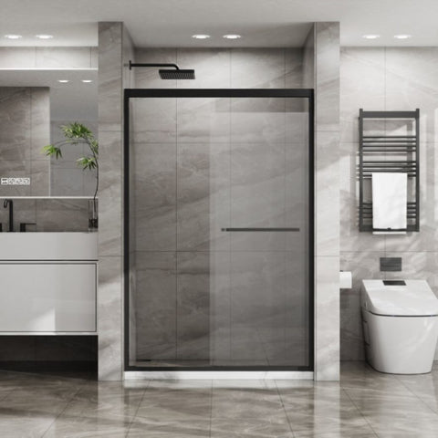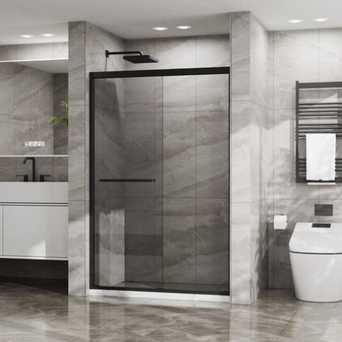 Premium Construction & Safety - Crafted from 1/4" (6mm) SGCC clear tempered glass, this sliding shower door ensures exceptional durability and safety. The glass is reinforced with an explosion-proof coating to prevent shattering, providing a safe and clear view for years.