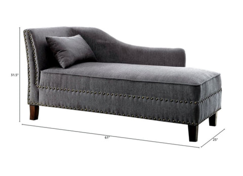 Gray Fabric Chaise / Bench Nailhead Trims Pillow Plush Comfort 1pc Chaise Living Room Furniture B011P305692