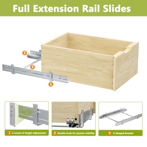 Superior QualityThis pull out kitchen storage cabinet features Hard-close full-extension ball bearing slides, rated for 100 pounds. Constructed from high-quality birch and oak with a natural transparent coating, it's sturdy and built to last. The pull out basket also boasts a natural, elegant color and texture, striking a perfect balance between utility and aesthetics in your kitchen storage solutions