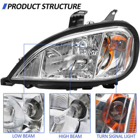Headlights Assembly Fit For 2004-2017 Freightliner Columbia, Chrome Housing And Amber Reflector W1155P284482