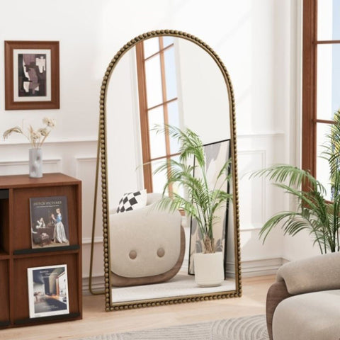 Arched Design: The unique arched shape of this full-length mirror not only enhances its visual appeal but also provides a broader viewing angle, allowing you to see your entire outfit with ease.
