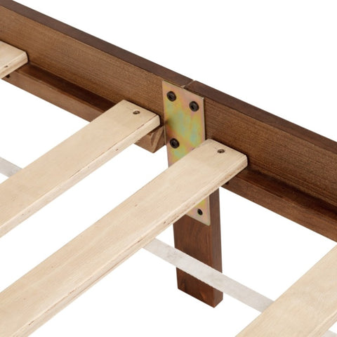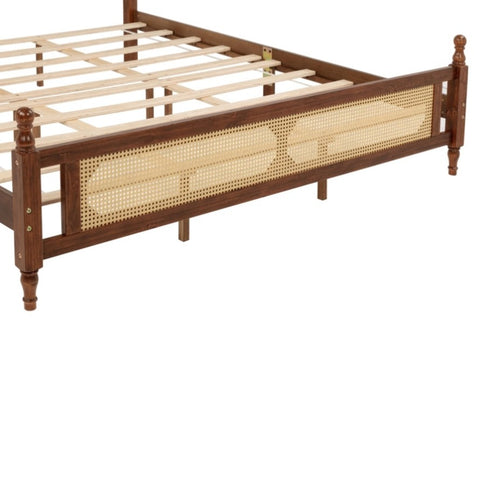 King Pine wooden Bed with Rattan Headboard and Footboard, with Central Enhanced Bed Platform,Walnut W504P269835