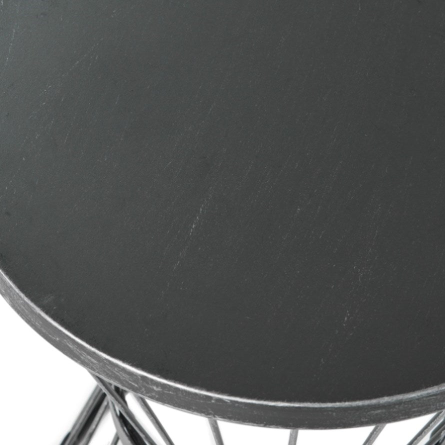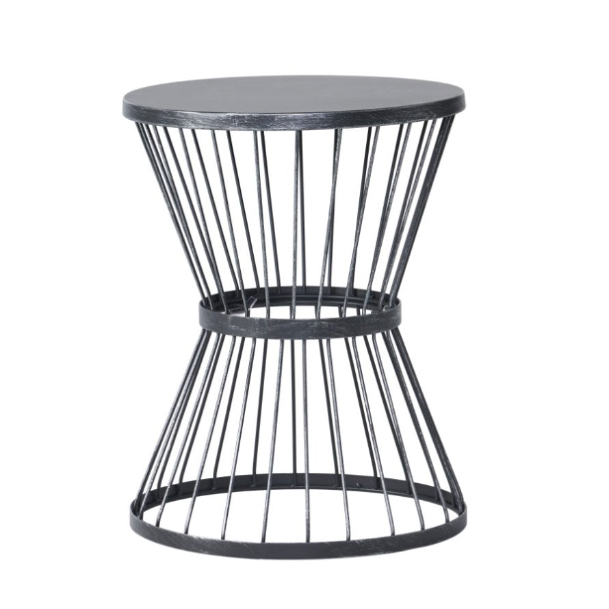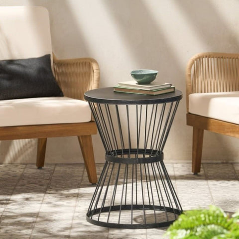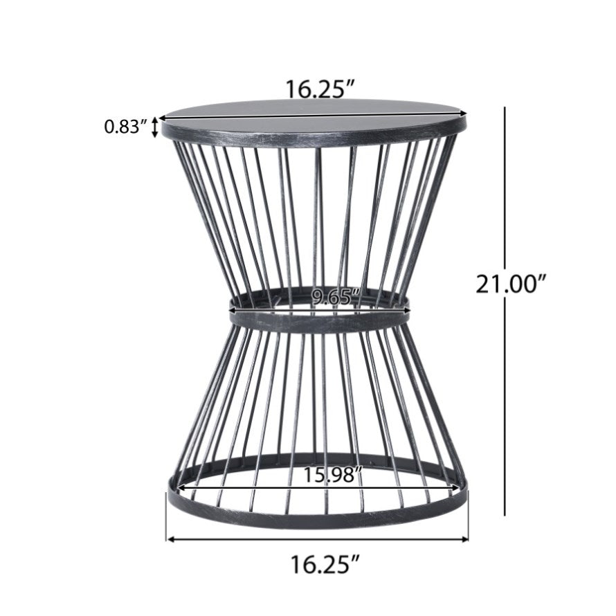 The frame of this side table features a sleek, modern hourglass structure and an open cage design, making this piece great for any area in need of something new.