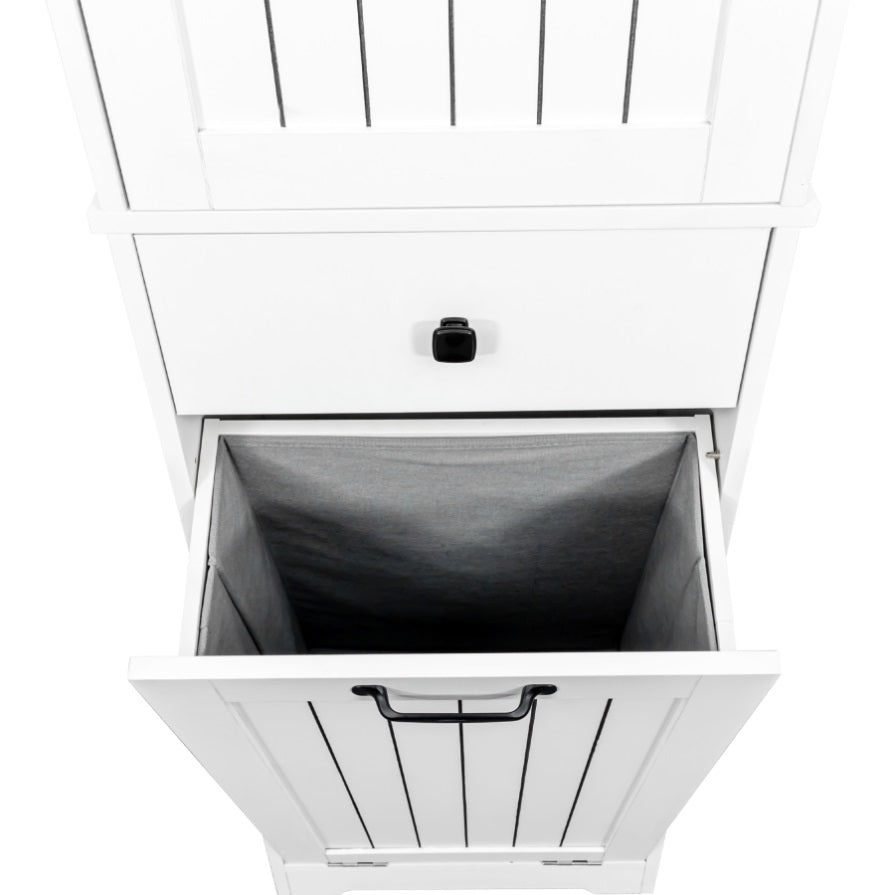 One compartment with removable cloth bags for easy separating,keep dirty laundry and towels neatly hidden away.