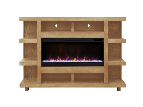 The Laurel Canyon 72 inch Fireplace Mantel delivers the perfect blend of modern, urban style with rustic tranquility. Skillfully crafted from Oak Solids and Veneers, this robust Mantel with Electric Fireplace is available in your choice of three finish options and features unique, open-ended shelving. Ideal to place below a wall-mounted TV, this Fireplace Mantel will provide ample space to showcase home décor and house media and gaming consoles. Cable management openings on the back panel will keep all cords and wires concealed. The 42” Electric Fireplace Insert with crystals and faux wood burning logs includes multiple settings that will heat up to 400 square feet and a remote control. Four (included) screws make securing the fireplace insert to the console quick and simple. From mountain lodge to urban loft, the clean lines of Laurel Canyon will be a stunning and welcome addition to any home.