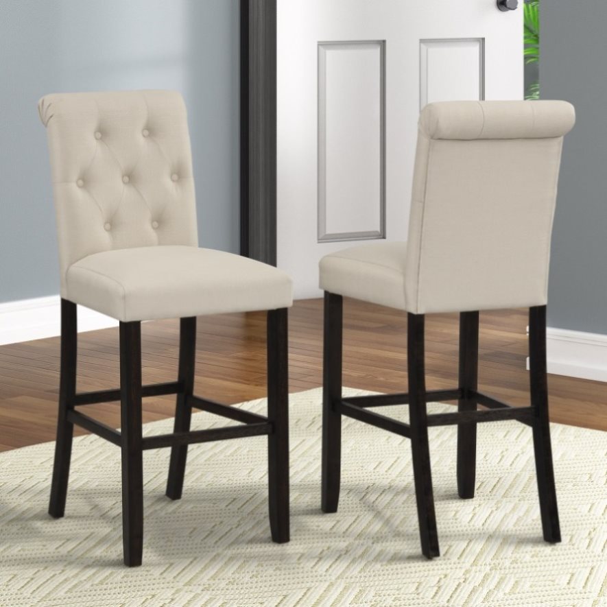 Leviton Solid Wood Tufted Asons Barstool, Set of 2, Tan T2574P165119