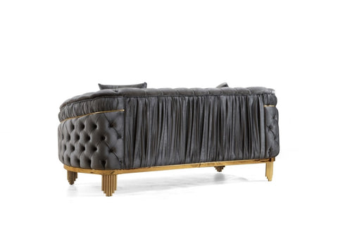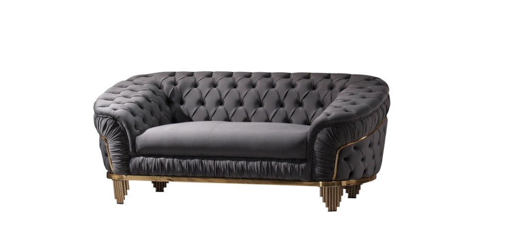 Loveseat in Grey and Gold with Fabric button-tufted velvet upholstery Finish 698781499122