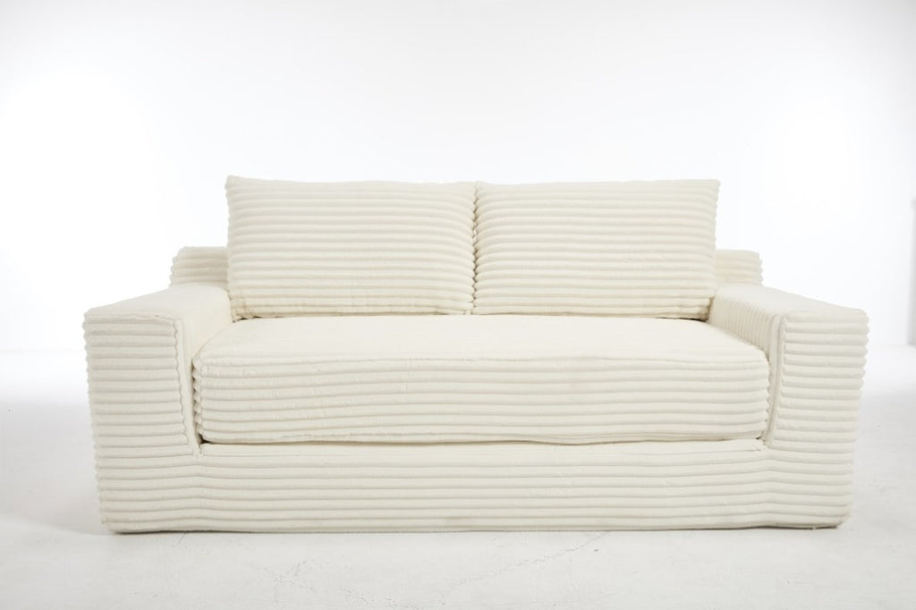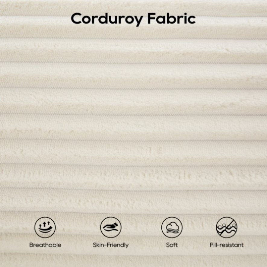 Premium Corduroy Fabric: Upholstered in durable, easy-clean corduroy fabric, this loveseat combines a retro-chic texture with modern practicality. Resistant to stains and fading, it maintains its elegance in high-traffic areas like bedrooms or home offices.
