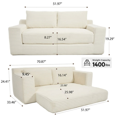 Loveseat Sofa Bed with Memory Foam & Steel Frame - No Assembly, Convertible 2-in-1 Design, Corduroy W2959P278432