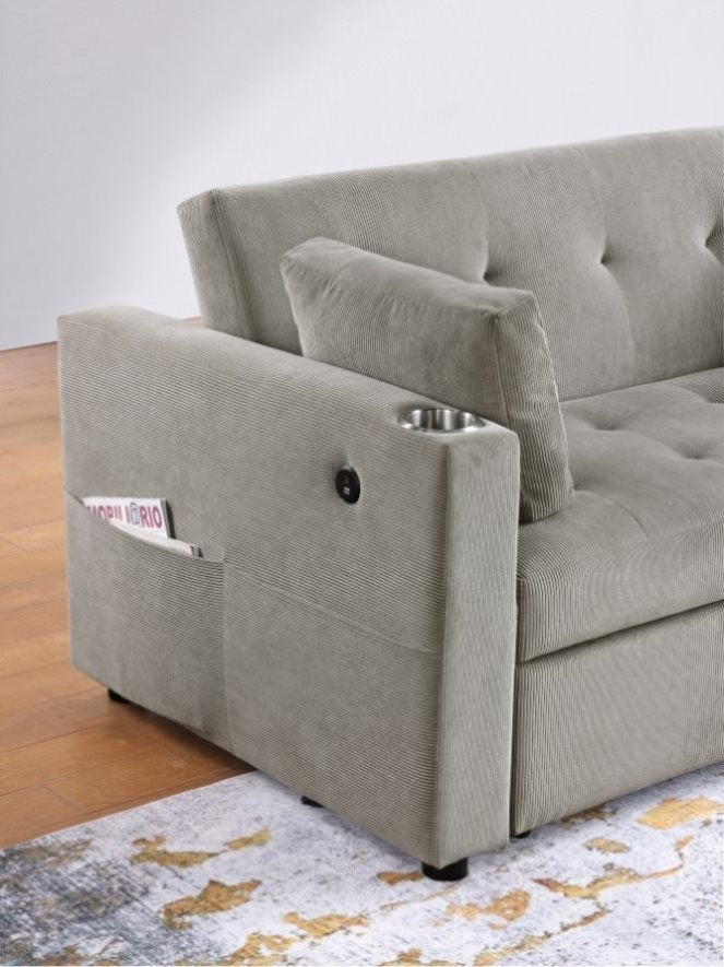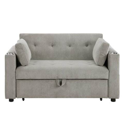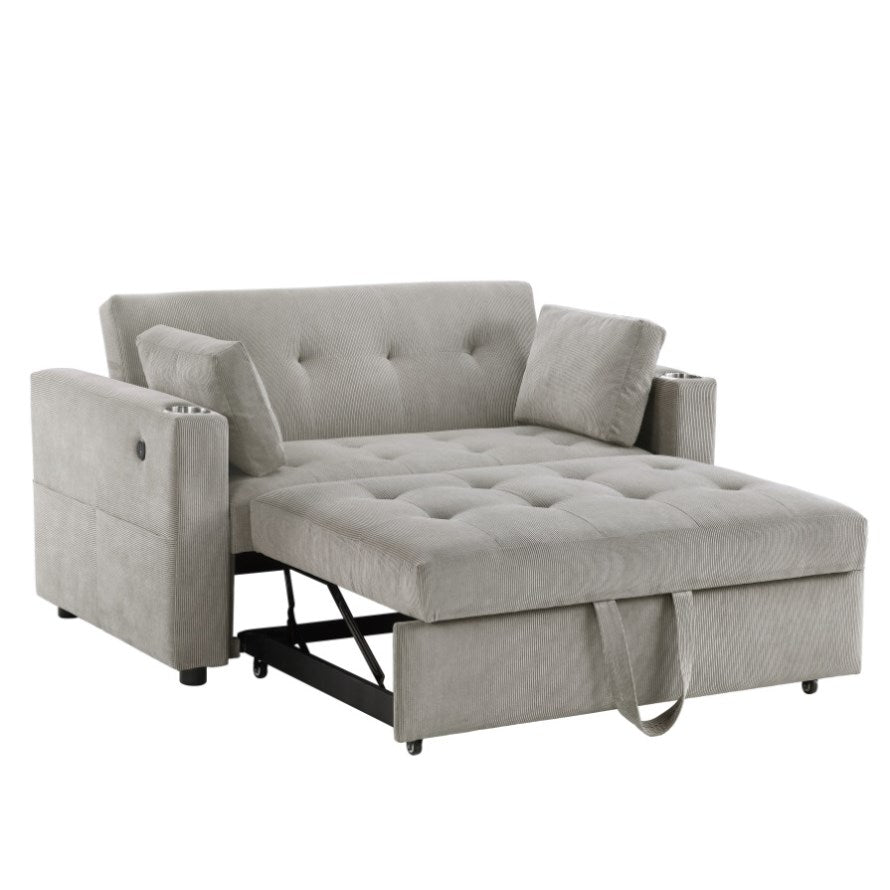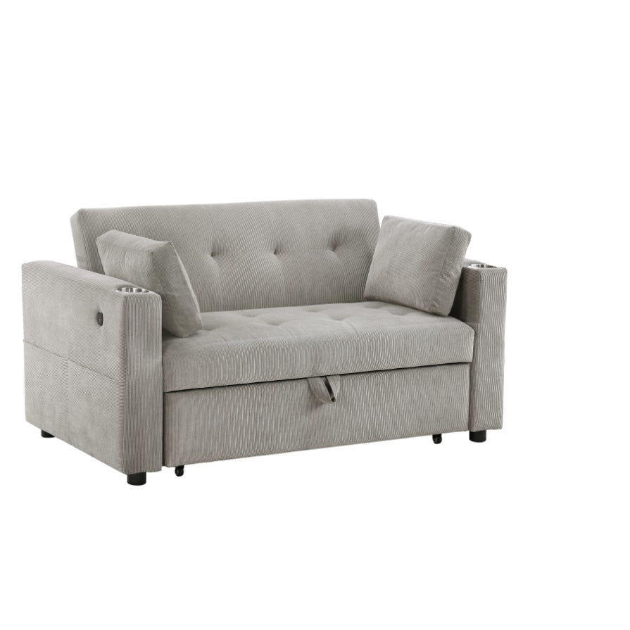 Luelle 57"W Gray Corduroy Convertible Sleeper Loveseat with Cupholders, USB Ports, Magazine Pockets, B061P296419