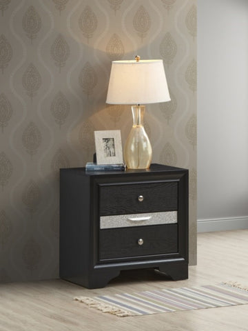 In a striking deep black shade, the nightstand's sturdy wooden trim frames give it an inviting warmth that seamlessly integrates with various decor themes, ensuring it is a fitting addition to your personal style.