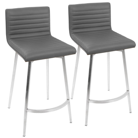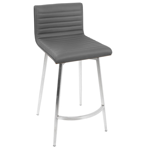 The simple and sleek design of the LumiSource Mason Swivel Counter Stool is versatile and aesthetically pleasing. Featuring a solid wood back, tufted faux leather seat and a stainless steel base, the Mason Swivel Counter Stool will pair nicely with a variety of decor styles.