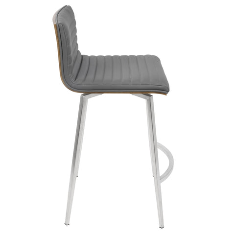 Mason Contemporary Swivel Counter Stool in Stainless Steel, Walnut Wood, and Grey Faux Leather by B202P222087