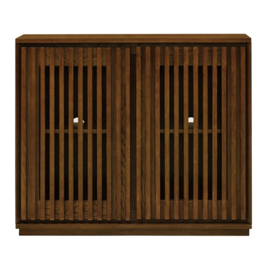 [ Vintage Fluted Design ] - Elegant wood grain, vintage color and hollowed out solid wood strips are combined with the design to create a vintage and elegant appearance. Exquisite and elegant appearance and excellent storage function, can be flexibly used as hallway cabinet, entrance storage cabinet, file cabinet, dining cabinet, coffee bar cabinet, wine cabinet or living room decorative cabinet.