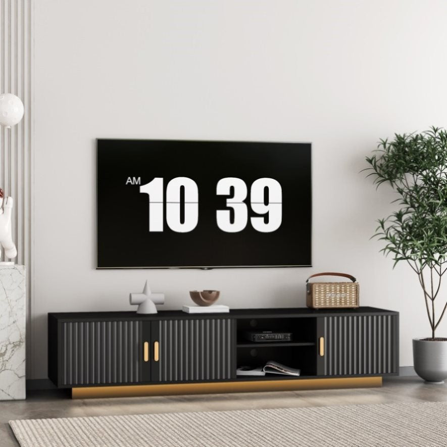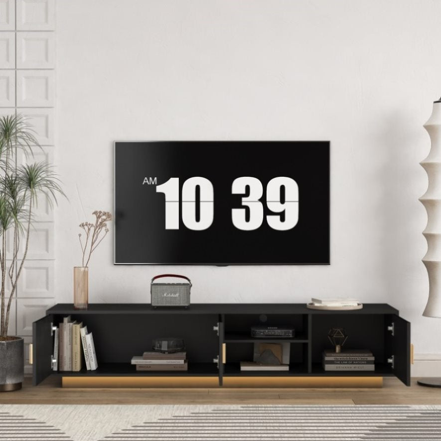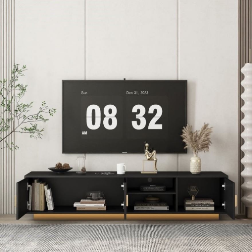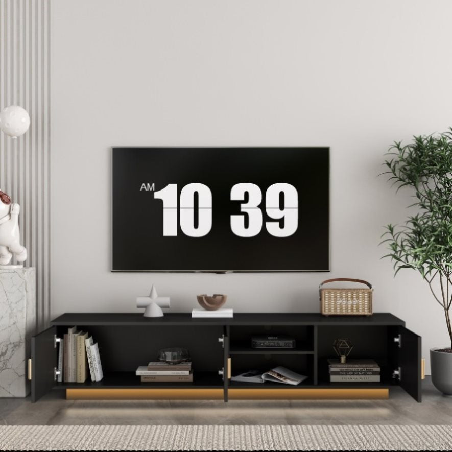 High Quality Materials: The TV cabinet is made of selected MDF boards and environmentally friendly particle boards, which are safe and durable. The waterproof finish on the surface makes daily cleaning easier.