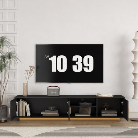 Mid Century Modern TV with LED Lights for 80 Inch TV, Entertainment Center Wooden TV, TV W1321P154003