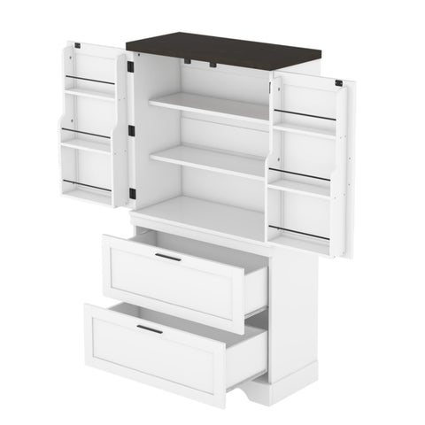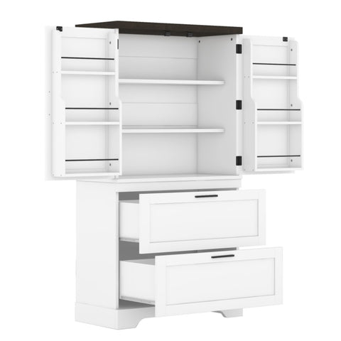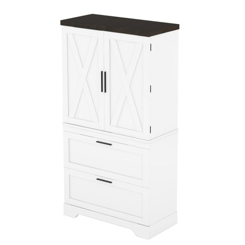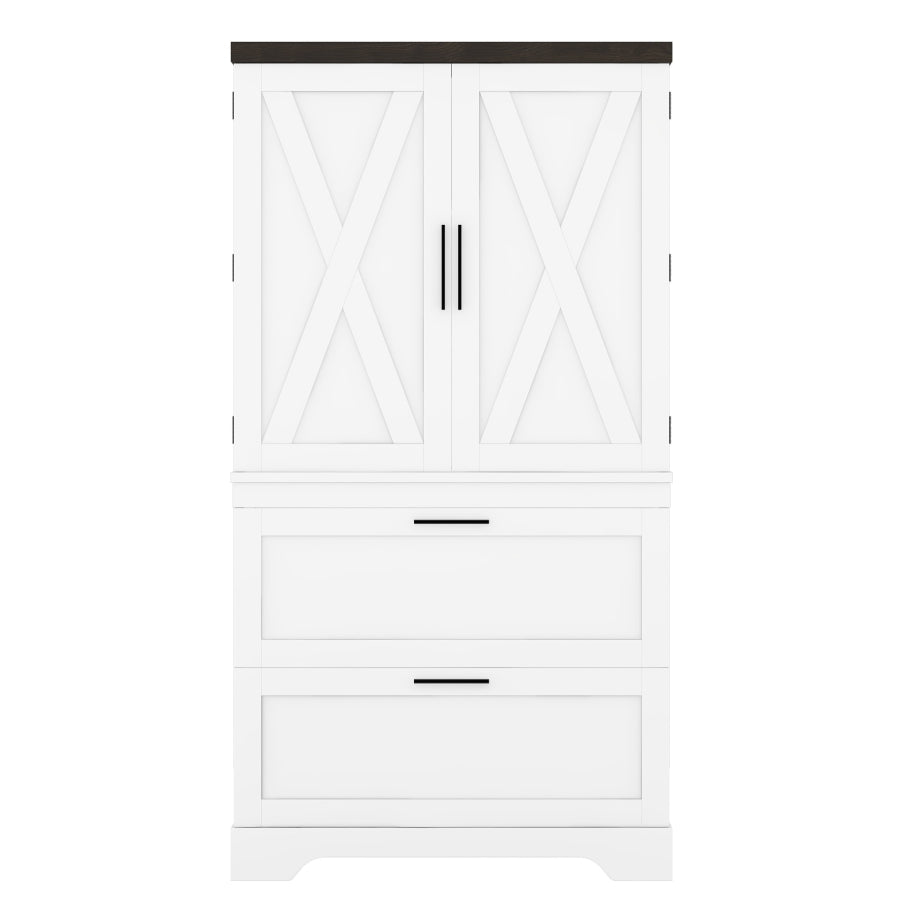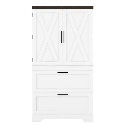 The Farmhouse Style Storage Cabinet features a classic X pattern that blends seamlessly with modern farmhouse style furniture, reflecting the harmony of rustic charm and practical storage solutions. The upper interior of the X-shaped barn door features storage shelves for bottles and cans, while the lower portion features 2 large storage drawers that open and close easily for convenient storage. Increased storage space, ideal for dining room, living room, bedroom, hallway and more.