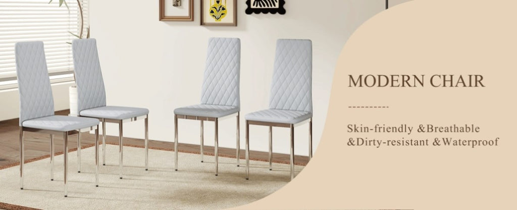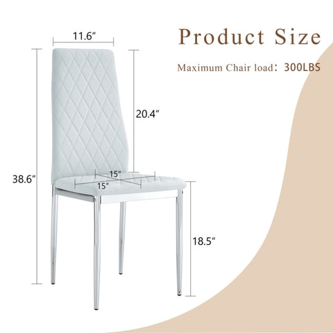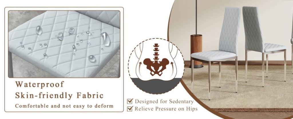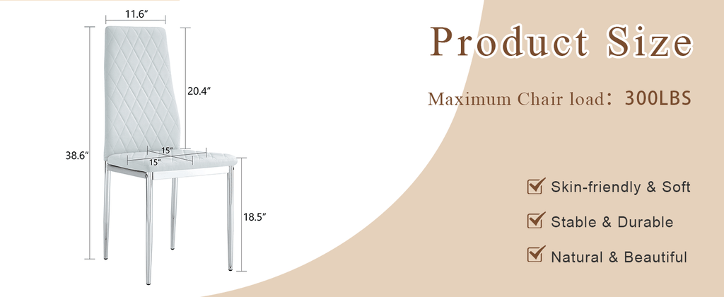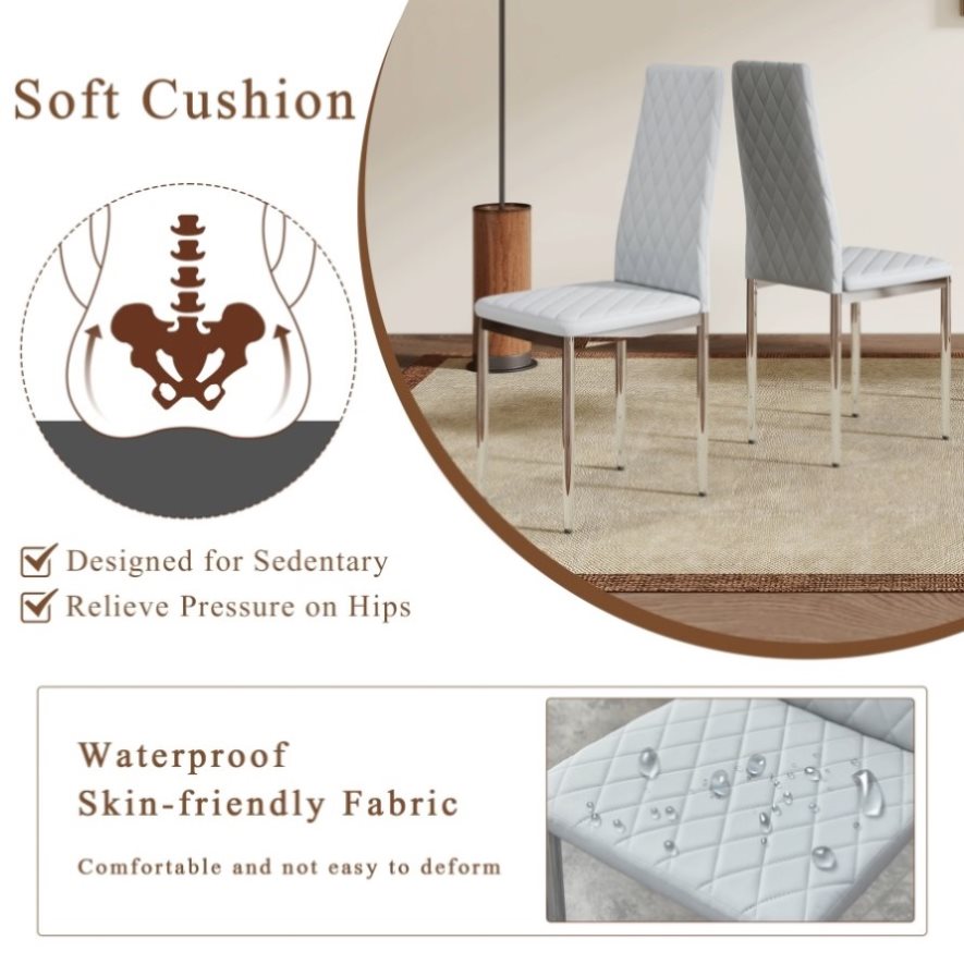Silver Metal Legs, Stable and StrongThe legs are constructed from silver metal, ensuring structural stability, strong load-bearing capacity, and safe usage.Anti-slip Pads Design, Enhancing SafetyEquipped with anti-slip pads on the chair feet, effectively preventing the chairs from sliding during use, enhancing safety and stability.