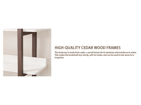 The bookcase is made from cedar,a wood known for its hardness and resistance to water.This makes the bookshelf very sturdy,will not shake,and can be used in wet areas for a long time.