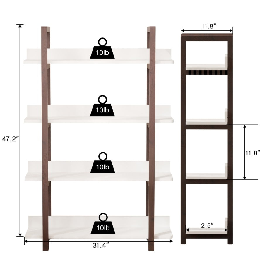 Takes up only 31.8"Wx11.4"D floor space,making full use of the vertical space for storage,Four layers of multifunctional open shelf can also be used as bookshelves, plant stand. It can hold decorations, photo albums, plants, etc.,
