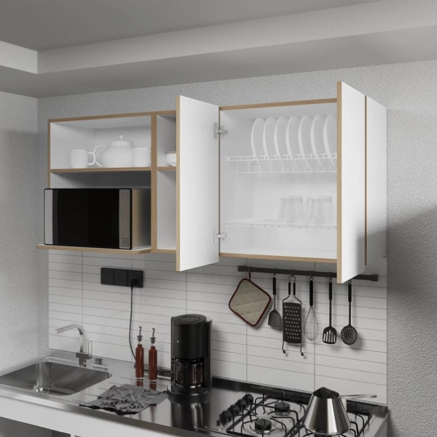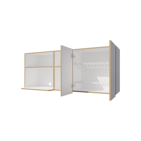 Natural Oak and White Kitchen Cabinet with Microwave Space and Open Shelf B062P290291