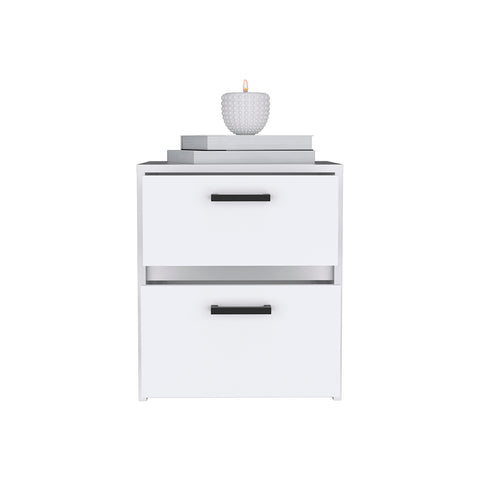 Nightstand Chequered, Two Drawes, White Finish B092123118