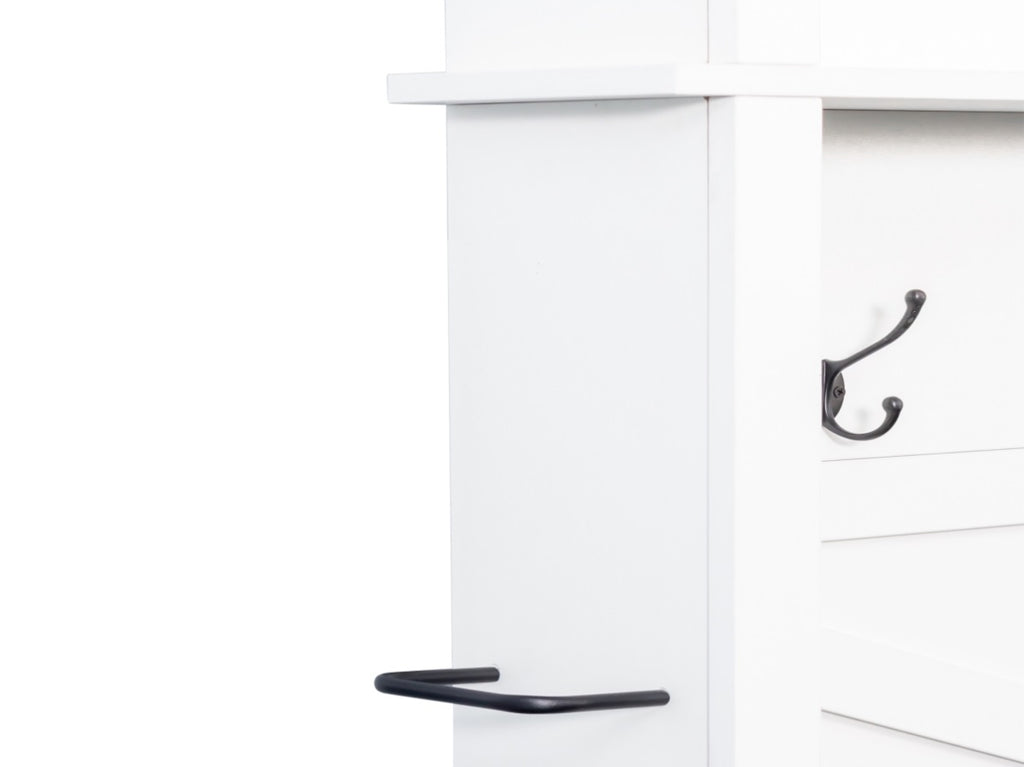 The free-standing entrance hall tree seamlessly integrates hooks, bench, umbrella holder, and shoe cabinets, offering an extensive array of storage options for your living room and entrance area. The unit features a convenient side umbrella rack, perfect for hanging your umbrella, keys, and other essentials.