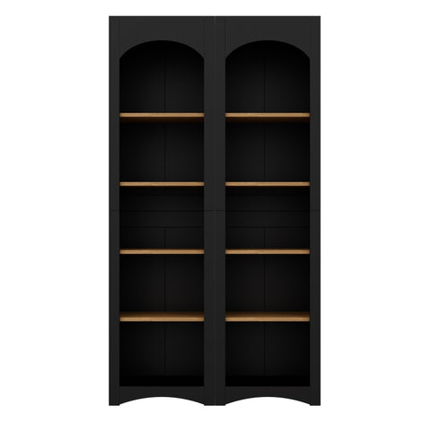 ON-TREND Free Standing 5 Tier Bookshelves, Bookcases Set of 2, Farmhouse Two-Tone Storage Cabinet N721P245734B