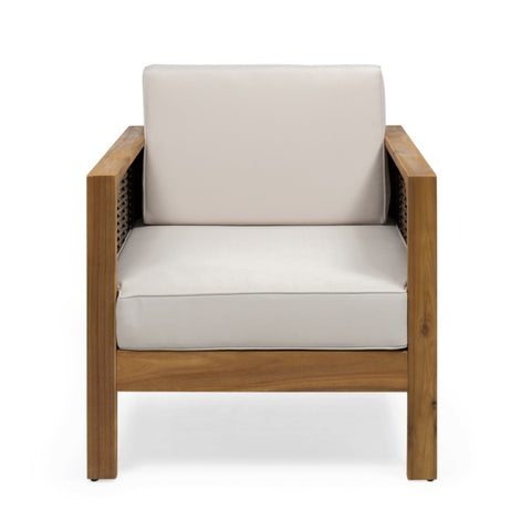 Outdoor Acacia Wood Club Chair with Wicker Accents, Teak Finish Mixed Brown Beige, 30.25"D x 68942.00BGE