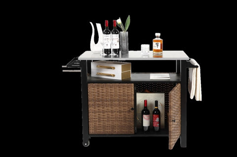 Outdoor Kitchen Wicker Island Rolling Cart & Storage Cabinet