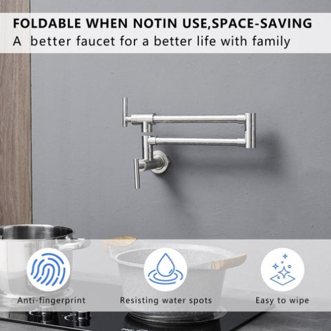 Pot Filler,Wall Mount Commercial Pot Filler Faucet,304 SS Material Kitchen Folding Faucet