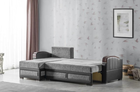 Transform this Sectional into a sleeper or utilize the included storage compartments