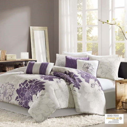The Madison Park Lola Comforter Set transforms your bedroom into a beautiful and graceful space. A gorgeous floral print pops against the solid cotton sateen comforter and shams (1 for Twin/Twin XL Sizes) for a stunning transitional look. Three decorative pillows with embroidered details and fabric manipulation add texture and dimension to the bed. A solid bed skirt completes the look with sophistication. This bedding set is also OEKO-TEX certified, meaning it is free of any harmful substances or chemicals for your comfort and wellness. The items in the set may arrive in a rolled or compressed packaging, which will need to be fluffed up or steam ironed before use to smooth out the wrinkles. This bedding set is available in 4 different colorways: