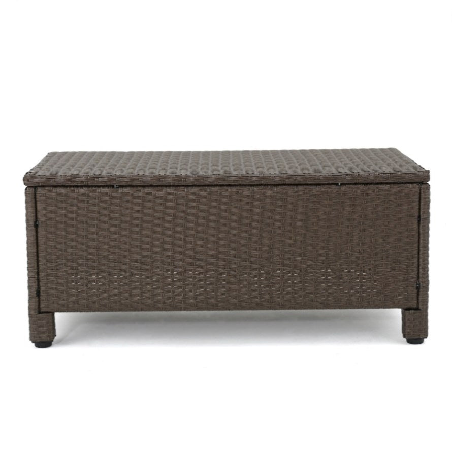 Foam-filled cushions with polyester-blend cover top each seat and line the back, for plenty of padding as you unwind with a drink and a book. The cushions are also sewn shut, so take care when spot-cleaning.
