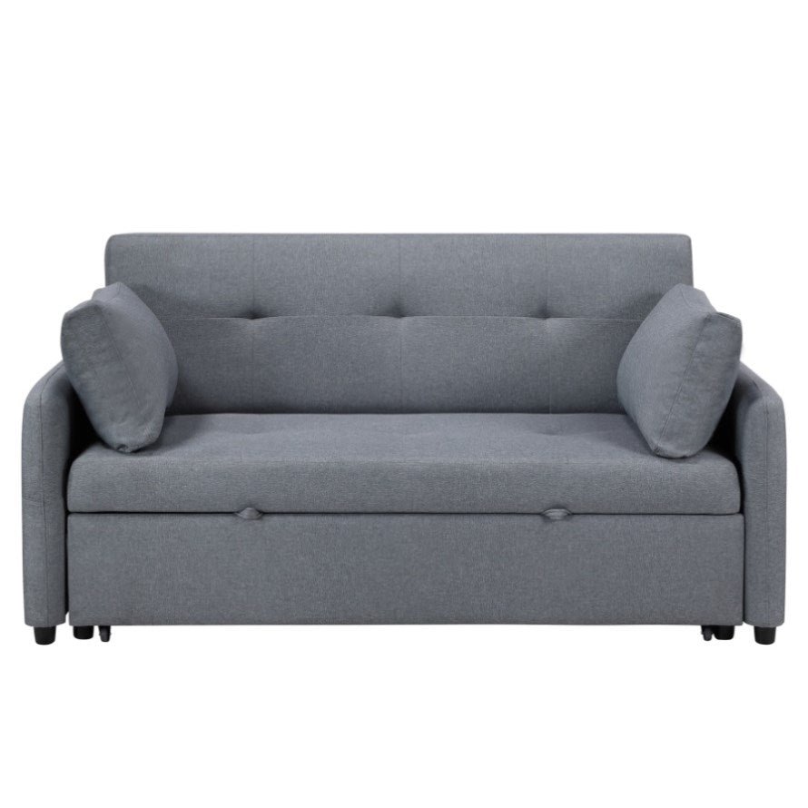 The Radella Convertible Sleeper Sofa is a stylish and practical addition to any home, offering both comfort and convenience in a compact design. Its compact yet stylish design makes it a perfect fit for apartments, dorms, or guest rooms, while the easy-to-use sleeper function ensures you’re always prepared for overnight guests. Built-in USB ports and power sockets let you charge your devices without hassle, and integrated side pockets offer extra storage for books, remotes, and more. Finished with tufted cushions and two plush pillows, the Radella adds both elegance and coziness to any room, making it the perfect blend of practicality and style.