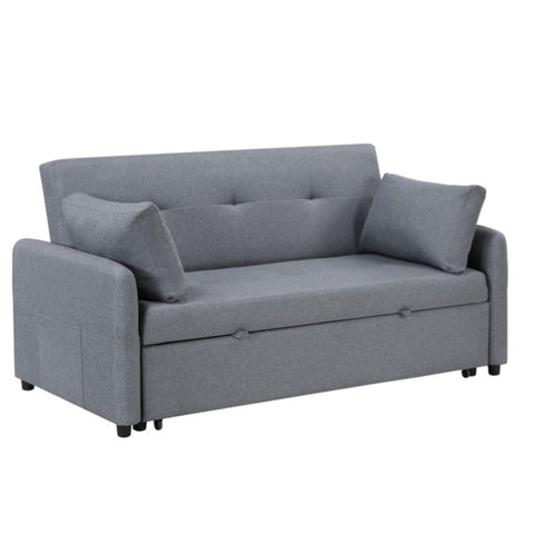 Radella 69"W Gray Linen Convertible Sleeper Sofa with USB Ports, Power Sockets, Pockets, Pillows, B061P296420